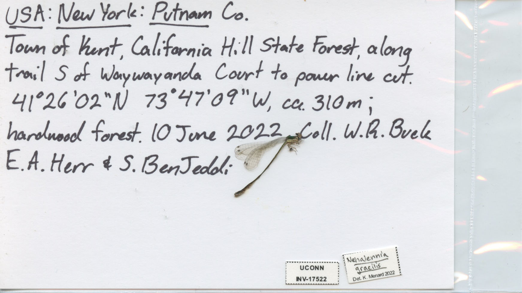 USA: New York: Putnam Co./Town of Kent, California Hill State Forest, along/trail S of Waywayanda Court to power line cut./41°26'02"N 73°47'09"W, ca. 310 m;/hardwood forest. 10 June 2022. Coll. W. R. Buck/E. A. Herr & S. BenJeddi.