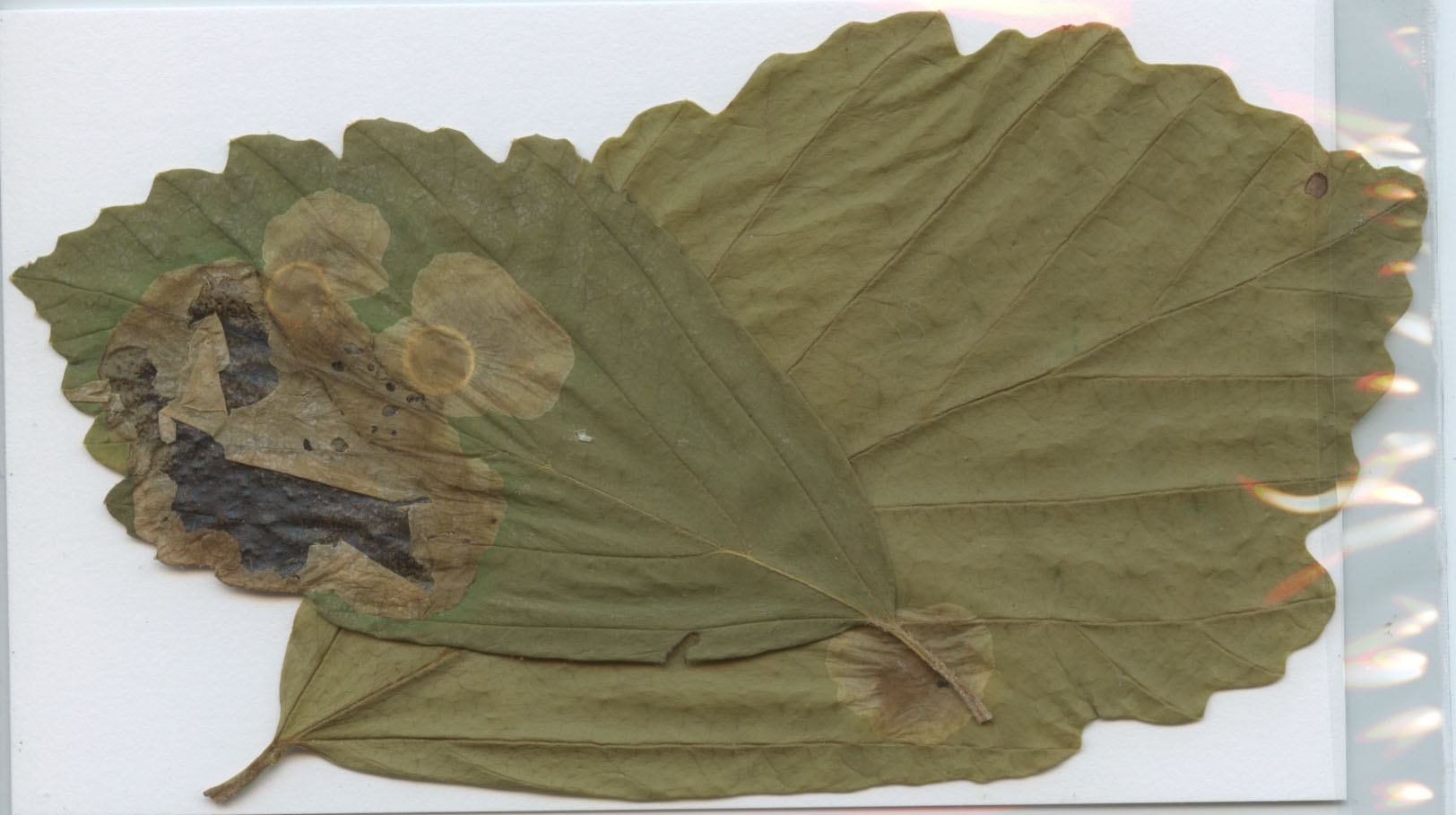 United States of America: New York: Putnam Co./ Town of Kent. 222 Nichols Street/ 195 m. 6 September 2022. Collectors: C. Eiseman, W. R./ Buck, E. A. Herr./ 41°26'49" N 73°41'48" W/ Cameraria hamameliella on/ Hamamelis virginiana