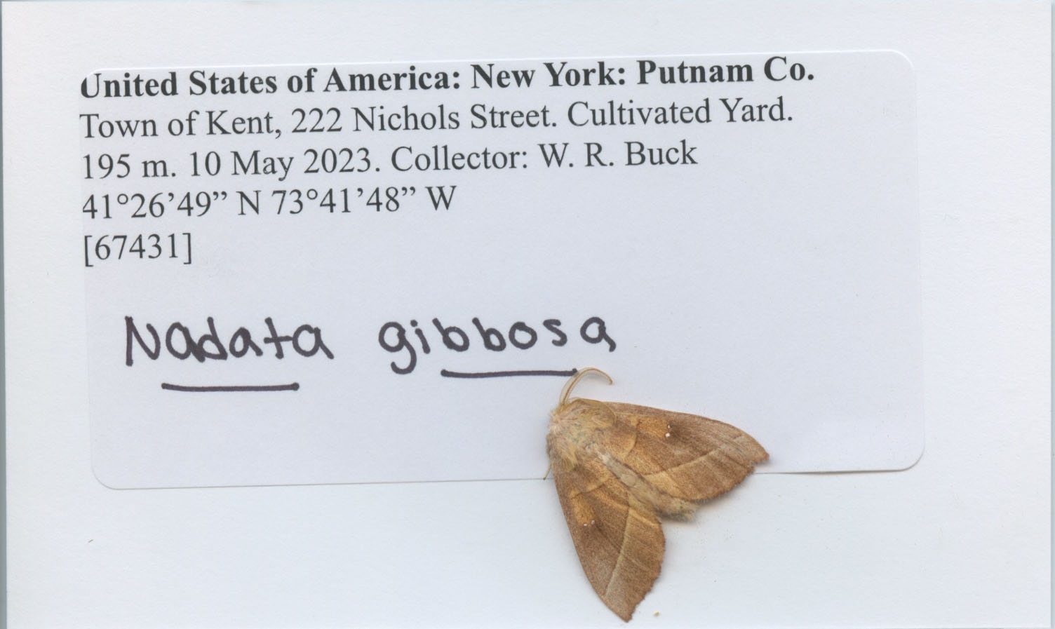 United States of America: New York: Putnam Co./ Town of Kent, 222 Nichols Street. Cultivated yard./ 195 m. 10 May 2023. Collector: W. R. Buck/ 41°26'49" N 73°41'48" W/ [67431]/ Nadata gibbosa