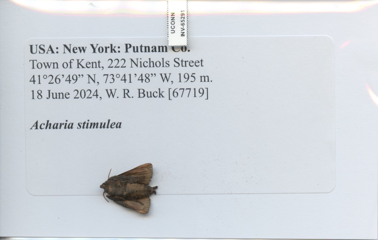 USA: New York: Putnam Co./ Town of Kent, 222 Nichols Street/ 41°26'49" N, 73°41'48" W, 195 m./ 18 June 2024. W. R. Buck [67719]/ Acharia stimulea