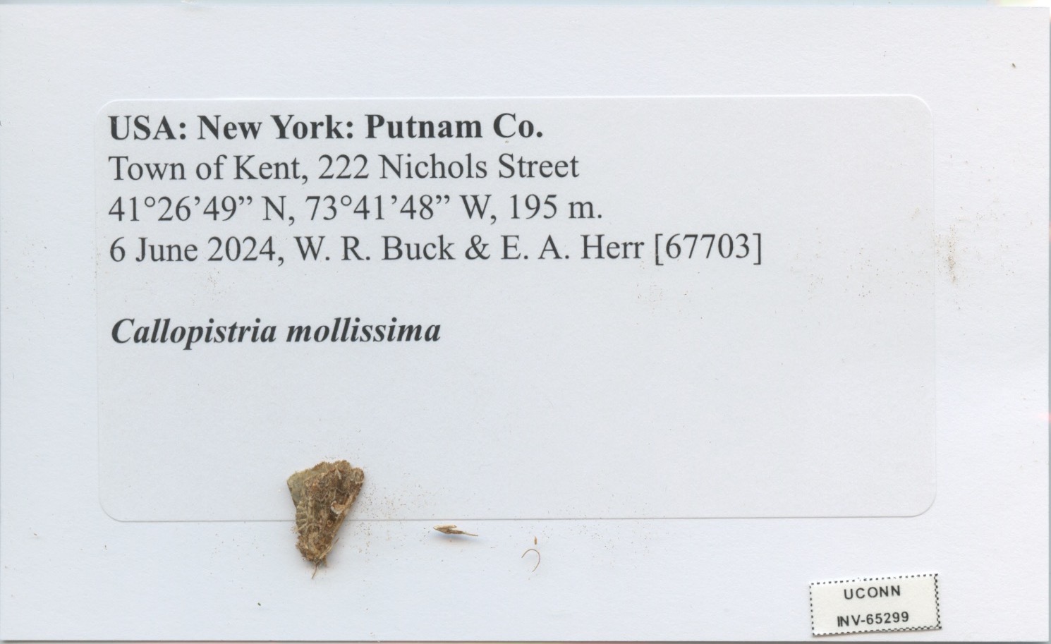 USA: New York: Putnam Co./ Town of Kent, 222 Nichols Street/ 41°26'49" N, 73°41'48" W, 195 m./ 6 June 2024. W. R. Buck | E. A. Herr [67703]/ Callopistria mollissima