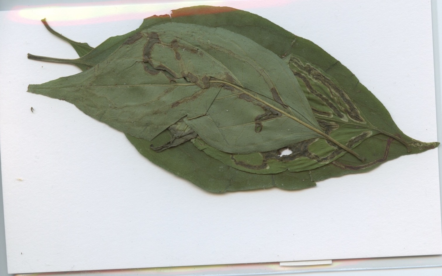 USA: New York: Putnam Co./ Town of Kent, Wonder Lake State Park, along Yellow/ Trail on NW side of Bare Hill/ 41°29'50" N, 73°39'33" W, 260 m./ 7 August 2025, W. R. Buck, C. Eiseman & R. Nazci/ [67825]/ Phytomyza agromyzina on Cornus racemosa