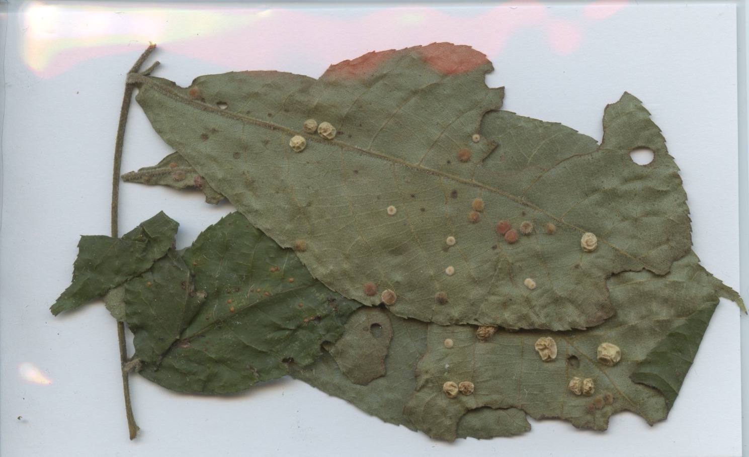 USA: New York: Putnam Co./ Town of Kent, California Hill State Forest, along trail from S end of Waywayanda Court to powerline cut./ 41°26'00" N, 73°47'07" W, 290 m./ 7 August 2025, W. R. Buck, C. Eiseman & R. Naczi/ [67827]/ Caryomyia sp. on Carya glabra