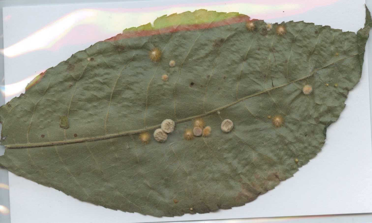 USA: New York: Putnam Co./ Town of Kent, California Hill State Forest, along trail from S end of Waywayanda Court to powerline cut./ 41°26'00" N, 73°47'07" W, 290 m./ 7 August 2025, W. R. Buck, C. Eiseman & R. Naczi/ [67827]/ Caryomyia sp. on Carya glabra