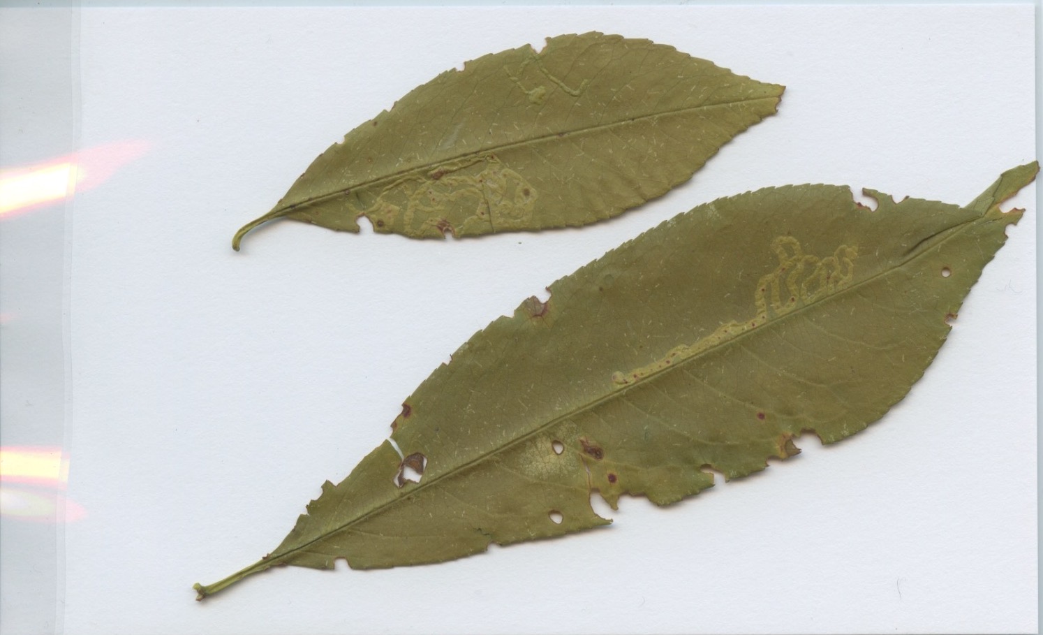 USA: New York: Putnam Co./ Town of Kent, 222 Nichols Street./ 41°26'49" N, 73°41'48" W, 195 m./ 7 August 2025, W. R. Buck & Charley Eiseman [67822]/ Phytomyza persicae on Prunus persica